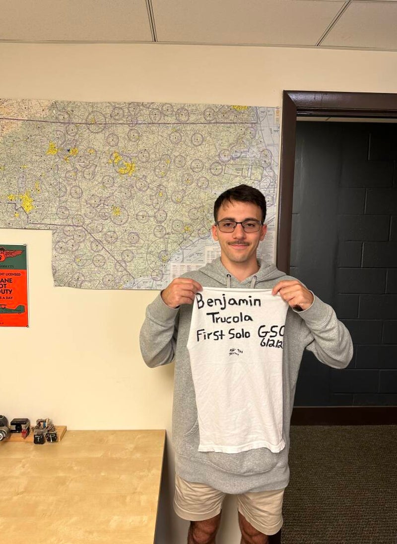 Congratulations to Benjamin Trucola on completing his first solo flight on Friday, June 2nd! Benjamin has worked hard and put forth his best skills to achieve this goal. His determination has been admirable and we can't wait to see him up ther fly by him self again!