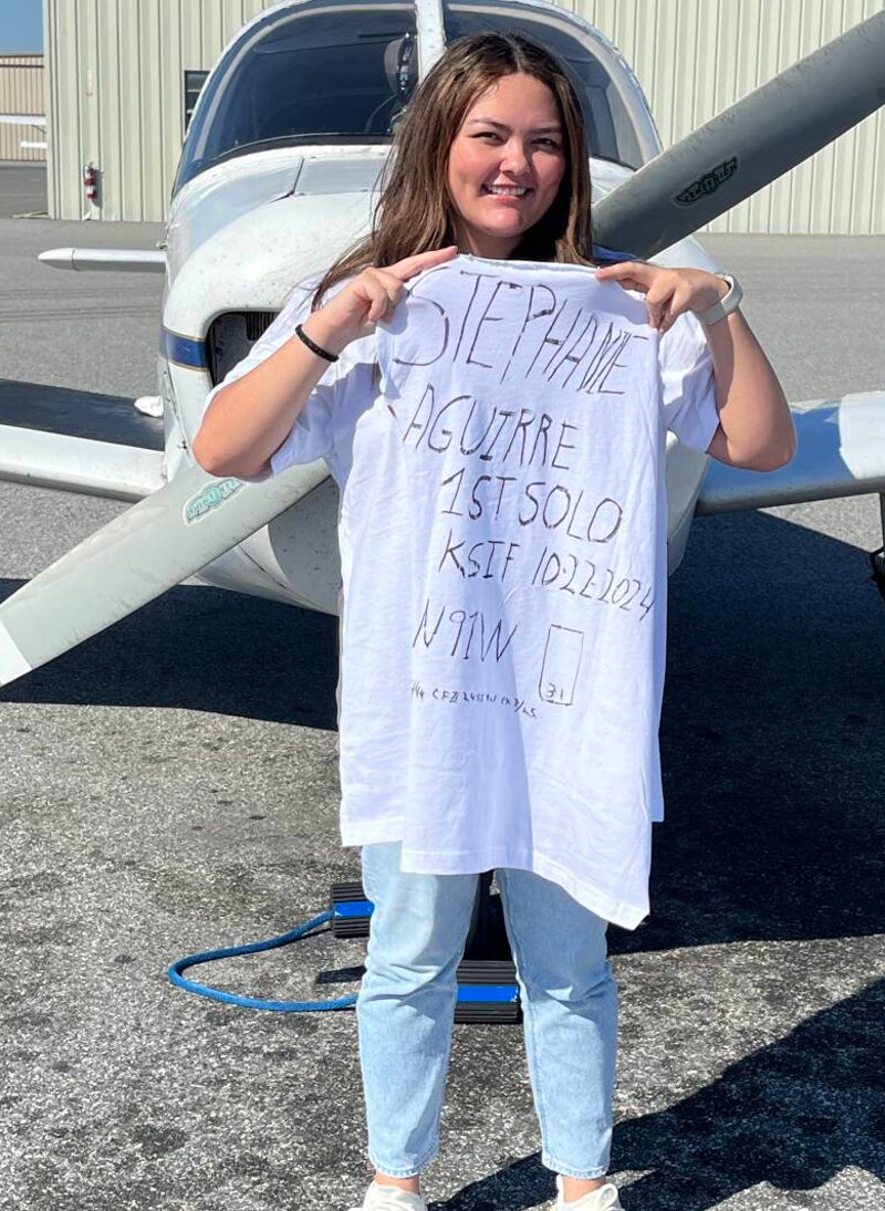 Congratulations to Stephanie Aguirre for completing her first Solo flight at Shiloh Airport on Tuesday, October 22nd! Stephanie has shown a strong drive and passion for her flight training. It didn't take her long to achieve her first solo flight! Nothing will stop her now as she pushes ahead to the next solo flight.